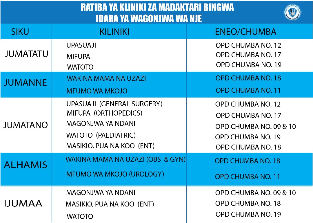 RATIBA NZIMA YA KLINIKI ZA KIBINGWA HII HAPA